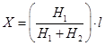 Для определения положения на плане проектной горизонтали по проектным отметкам двух точек рассчитывается расстояние от горизонтали до одной из точек: