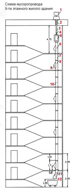 Комплектация мусоропровода для 9-ти этажного жилого здания