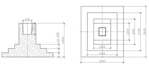 — конструкция — трехступенчатый железобетонный фундамент (подошва 1,8´1,8 м, высота