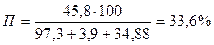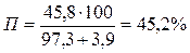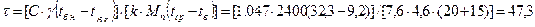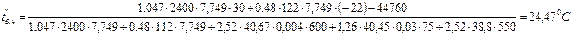 t '6 n =(1,047*2400*46 + 0,48*35*(-15))/(1,047*2400 + 0,48*35) =45,6 °С.