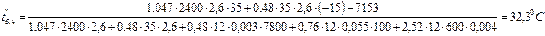 t '6 n =(1,047*2400*35 + 0,48*35*(-15))/(1,047*2400 + 0,48*35) =34,67 °С.