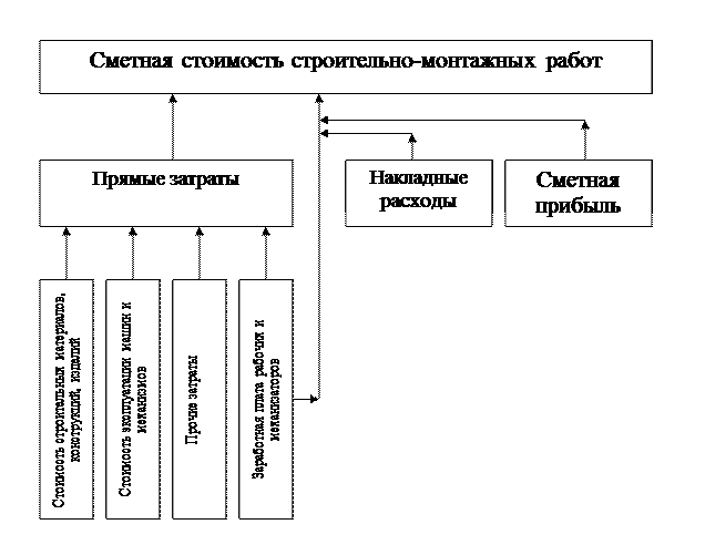 Рис. 1. Структура затрат, определяющих сметную стоимость строительно-монтажных работ.