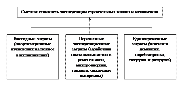 На рис. 3 можно увидеть структуру затрат, определяющих сметную стоимость эксплуатации строительных машин и механизмов. [3]