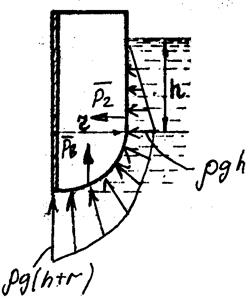 К борту корабля подведена стальная камера. После крепления и откачки воды из камеры производится ремонт подводной части корабля. Нижняя часть камеры имеет форму четверти цилиндра, верхняя – параллелепипеда. Определить силу гидростатического давления воды на камеру при известных ее размерах и построить эпюру давления.