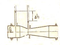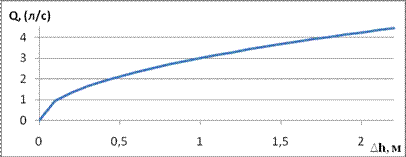 Заданы размеры водомера Вентури (d1 ,d2 ). Рассчитать и построить график зависимости расхода воды от перепада давления ∆h(в диапазоне расходов от Q=0 до Q=Qmax ). |