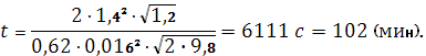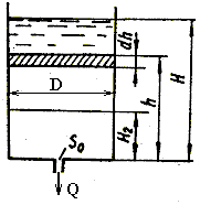 Из резервуара диаметром D и начальным наполнением Н вода вытекает через отверстие диаметром d. Определить время полного опорожнения резервуара.