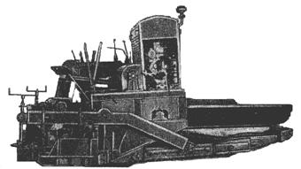передвигающаяся на гусеничном ходу. Помимо двигателя, трансмиссии и ходовой части, укладчик асфальтобетона имеет бункер для приема асфальтобетонной массы, скребковые питатели и трек, распределяющие массу перед рабочими органами на всю ширину укладываемой полосы (обычно 3,5 м), а так же сами рабочие органы в виде уплотняющего бруса и выглаживающей плиты. Укладка асфальтобетонной массы происходит на ходу с производительностью до 100 т/час.