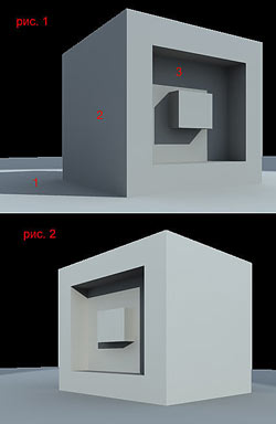 Категорически приветствую всех 3d центровцев. Ни для кого не секрет, что львиную долю работы (а как следствие, и доходов) современного трехмерщика, составляют архитектурные визуализации. Это одна из областей, где трехмерная графика реально востребована. Архитектура очень давно хотела, чтоб ее повизуализировали. До такой степени, что понятие rendering еще в до компьютерную эпоху употреблялось для обозначения вручную начерченных перспектив с покраской. Компьютерная визуализация является частным случаем понятия «подача архитектурного проекта». Самой архитектурной подаче много сотен лет и за это время она выработала некоторые каноны и подходы, которые являются общепринятыми в мире архитектуры. Не секрет, что большинство людей, которые сегодня занимаются архитектурной визуализацией, архитекторами по профессии не являются и с некоторыми правилами и законами этого жанра не знакомы. Систематизированной информации на эту тему, лично мне в интернете найти не удалось. Будучи отморозком, который имея архитектурное образование, тем не менее, большую часть времени на протяжении последних 10 лет посвящал визуализации, я решил написать небольшой тутор на тему «Архитектурная подача и законы композиции». Оговорюсь сразу, что эти законы и правила не являются обязательными к выполнению и более того есть сотни работ, в которых некоторые из этих правил (а может и все) нарушены, и это отнюдь не умаляет их достоинств. Начну я с композиции экстерьерных визуализаций. О предмете самой архитектурной композиции я говорить не стану - путь этим занимаются архитекторы. А говорить я буду о композиции кадра, выборе точки зрения, освещении и антураже. В качестве объекта визуализации возьмем куб. В приложенной картинке несколько вариантов того, как можно, но не нужно его визуализировать. Разберем ошибки каждого из них.