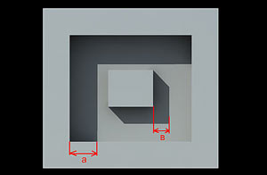 Если вы делаете визуализацию фасадов здания (не перспективная, а параллельная проекция), то постановка солнца подчиняется абсолютно жесткому правилу. Оно должно светить слева сверху под 45 градусов к земле и к фасаду. И это уже не «правило хорошего тона», а закон. Поскольку человек, глядя на такой фасад, по размеру и форме теней сможет однозначно судить о глубине и форме ниш или выступающих элементов. А если распечатать такой фасад в масштабе, то и линейкой померив размер тени, можно узнать глубину выступов (“b” на рисунке) и ниш (“a” на рисунке). Далее пара слов о ночной визуализации.