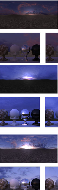 Ночная визуализация несомненно один из самых эффектных способов архитектурной подачи. Особенно красиво выглядят здания с большим количеством остекления и наружной подсветкой. Поэтому для ночной подачи в большей степени подходят общественные и административные здания, нежели жилые комплексы и уж тем более коттеджи. Целью любой архитектурной подачи является создание у зрителя представления об объеме объекта и ночь для этого не самое подходящее время. Так что выбор ночной подачи должен быть продуманным. Наипервейшая ошибка, которую делают почти все – это решение изобразить кромешную ночь и объект осветить только при помощи искусственной подсветки снаружи. Если вы обратите внимание на действительно красивые ночные фотографии архитектуры, то вы увидите, что все они были сделаны не ночью, а вечером или во время захода солнца, или сразу же после него, когда небо еще светится красноватым или сиреневатым цветом. Удачным решением будет использование в качестве освещения HDRI такого вида (см. рис). При таком подходе, даже если на здании не планируется наружного освещения, донести до зрителя идею его внешнего вида весьма просто.