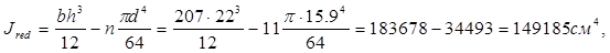 hred =h – (n*p*d2 )/4b=22 – (11*p*15.92 )/(4*207)=11.5 см>10 см.
