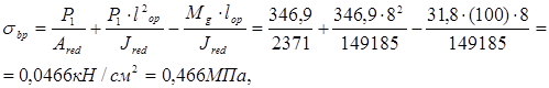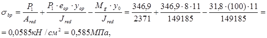 Передаточная прочность бетона Rbp устанавливается так, чтобы при обжатии отношение напряжений sbp /Rbp £0.75.
