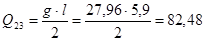 Q=(q+p)*l0 *gn /2=17501,4*6,3*0.95/2=52372,9Н.