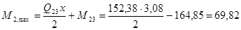 Отрицательный момент во втором пролёте на расстоянии ![]()