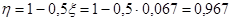 Из таблицы находим η=0,975
