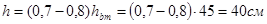 hf =hf ’=(h-h1 )/2=(22–14.3)/2=3.8 см;