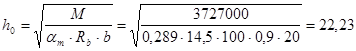 Высоту сечения определяем по опорному моменту при
