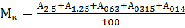 Где А2,5 ; А1,25 ; А063 ; А0315 ; А014 – полные остатки на сите с круглыми отверстиями d 2.5мм. и на ситах с сетками № 1,25; 063; 0315; 014.