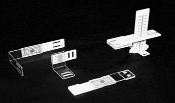 Применяются данные устройства для измерения ширины трещин в различных положениях. Изготовлены из плексигласа и ПВХ.