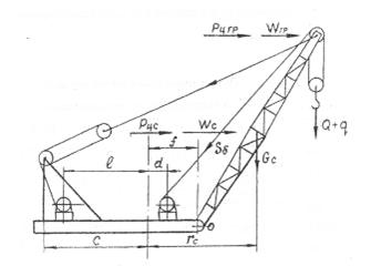 - инерционные силы, возникающие в периоды пуска или торможения механизмов крана (грузовая и стреловая лебедки; механизмы поворота крана);