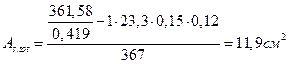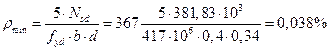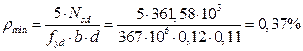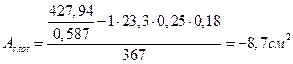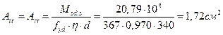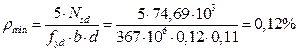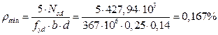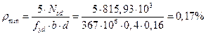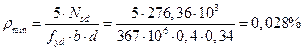 По конструктивным требованиям минимальная площадь сечения арматуры составляет: