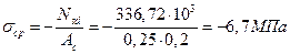 – начальное напряжение в бетоне на уровне центра тяжести напрягаемой арматуры от действия усилия предварительного обжатия (с учетом первых потерь):