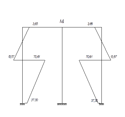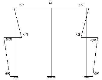 Рис. 23. Эпюра моментов от действия горизонтальной крановой нагрузки