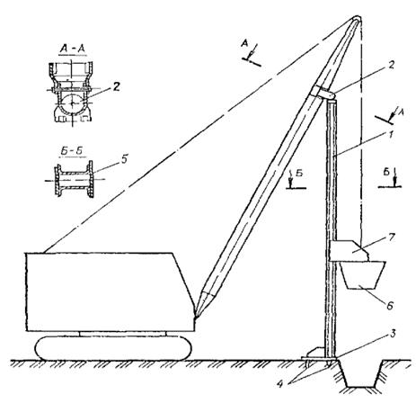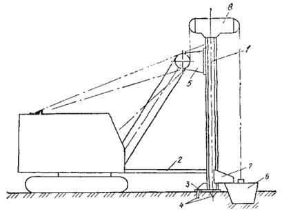 Рис. 7. Схема обору д о в ания для вытрамбо в ывания котло в анов на базе сваебойного агрегата