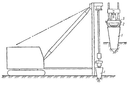 Вытрамбовывание котлованов производится падающей с высоты 4-8 м по Направляющей штанге трамбовкой, имеющей форму будущего фундамента и массу 1,5-7 т.