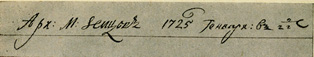 Автограф Земцова-архитектора. 22 января 1725 г.