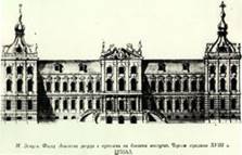 В дальнейшем, когда после смерти Земцова во главе создания ансамбля оказался Дмитриев, строительство дворца по-прежнему велось по чертежам Земцова. Выполненное в натуре здание отличалось от его проекта лишь тем, что сделали «против прожекту архитектора Земцова ... выше палаты, для того, что велено употребить готовые окошечные переплеты, перевезенные из Курляндии». Кроме того, вместо предложенных им «финиментов» – сложной барочной композиции – оканчивавшей дворец, в дальнейшем, Ф.Б.Растрелли создал над боковыми ризалитами купола. Прообразом для них послужило завершение царскосельской дворцовой церкви, созданное С.И.Чевакинским. Вот почему на копии чертежа фасада Аничкова дворца, исполненной Г.Дмитриевым, который воспроизводил замысел М. Земцова, этого завершения нет. Оно появляется на рисунке М.Махаева, выполненном с натуры в 1750 году. Показанная на рисунке галерея перед дворцом также была построена по проекту Земцова.