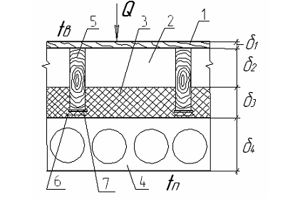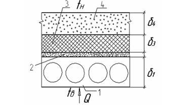 3.утеплитель, толщина которого δ3 определяется расчетом;