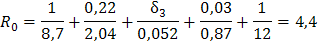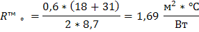 Требуемое сопротивление теплопередачи ограждающих конструкций, отвечающих санитарно-гигиеническим условиям, определяем по формуле: