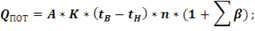 – коэффициент, принимаемый в зависимости от положения ограждения по отношению к наружному воздуху, принимают для жилых зданий: для наружных стен n