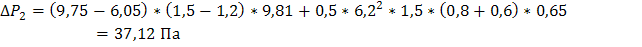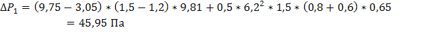 Определяем потери давления в местных сопротивлениях в соответствии с выражением