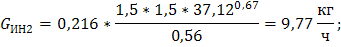 где L-расход вентиляционного воздуха, который в канале из кухни с 4-комфорочной газовой плитой составляет 90