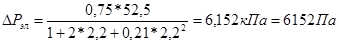 Суммарные потери давления в жалюзийной решетке и на участке 1 составляет