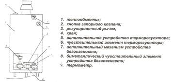 -частичное перекрытие газового клапана в случае уменьшения расхода воды и погасание основной горелки при прекращении протока воды через аппарат;