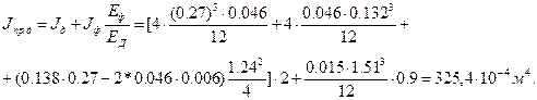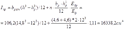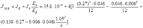 где Sпр – приведённый статический момент фанерной обшивки относительно центра тяжести сечения:
