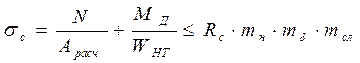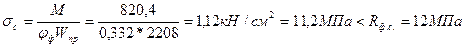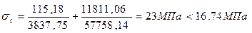 Найдем нормальные напряжения и сравним их с расчетным сопротивлением