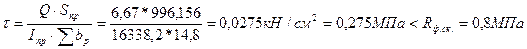 Напряжение скалывания клеевых швов между слоями фанеры (в пределах ширины продольных рёбер) проверяем по формуле: