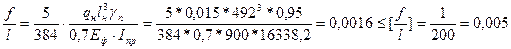 Прогиб плиты с учётом II уровня ответственности при qn =1,5кН/м=0,015кН/см и Еф =900 кН/см2 вычисляем по формуле