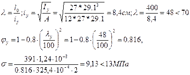следовательно коэффициент продольного изгиба определяем по формуле: