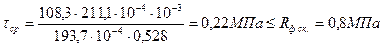 Проверим прочность по скалыванию в плоскости приклейки досок-накладок, на которые опираются уголки.