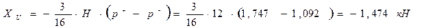 Хw = -0,5 * (W+ - W- ) = -0,5 * (1,572 – 0,981) = -0,3 кН