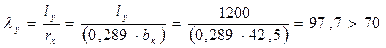 Найдем значения гибкости и коэффициенты продольного изгиба из плоскости рамы:
