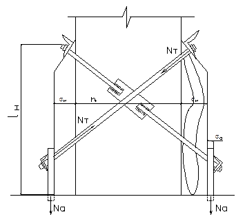 Предварительно принимаем, что распорки по колоннам (в плоскости, параллельной наружным стенам) идут только по верху колонн, т.е. использована крестовая схема вертикальных связей по колоннам без дополнительных распорок.