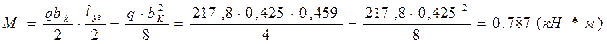 Максимальный изгибающий момент в середине пролёта плиты с учётом II уровня ответственности