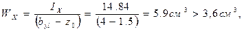 Принимаем равнополочный уголок ∟40х7 мм с Iх = 14,84 см4 и z0 = 1,5 см. Момент сопротивления уголка: