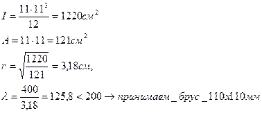 Принимаем по конструктивным соображениям брус сечением 110х110мм. Для него расчетная длина равна расстояние между точками закрепления